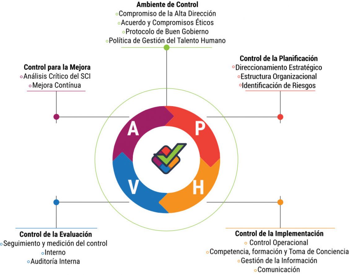 El Control Interno se define como el conjunto de normas, principios, fundamentos, procesos, procedimientos, acciones, mecanismos, técnicas e instrumentos de Control que, ordenados, relacionados entre sí y unidos a las personas que conforman una institución pública, se constituye en un medio para lograr una función administrativa del Estado íntegra, eficaz y transparente, apoyando el cumplimiento de sus objetivos institucionales y contribuyendo al logro de la finalidad social del Estado.